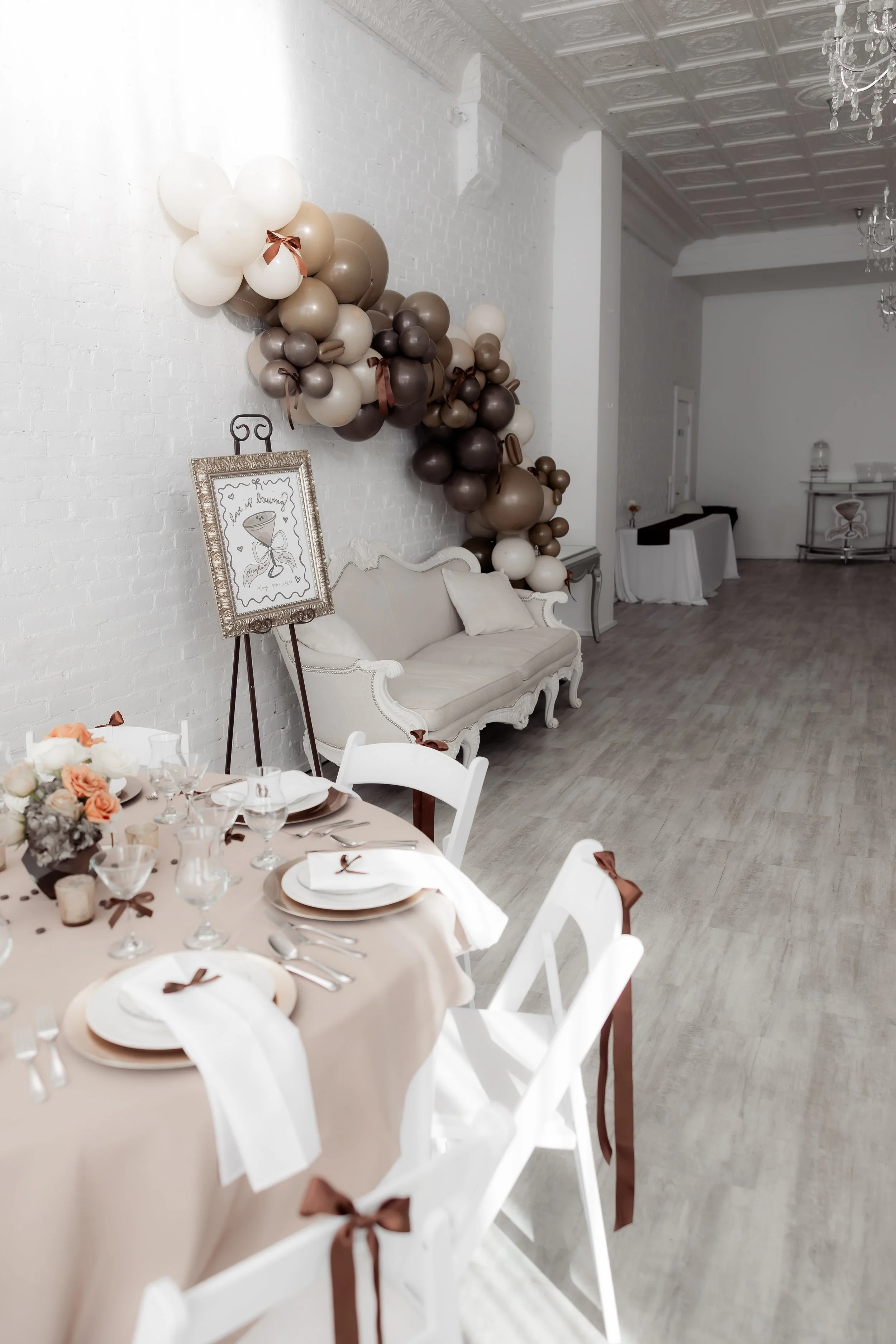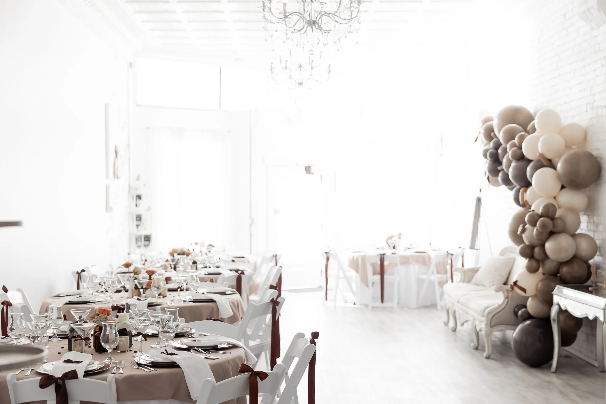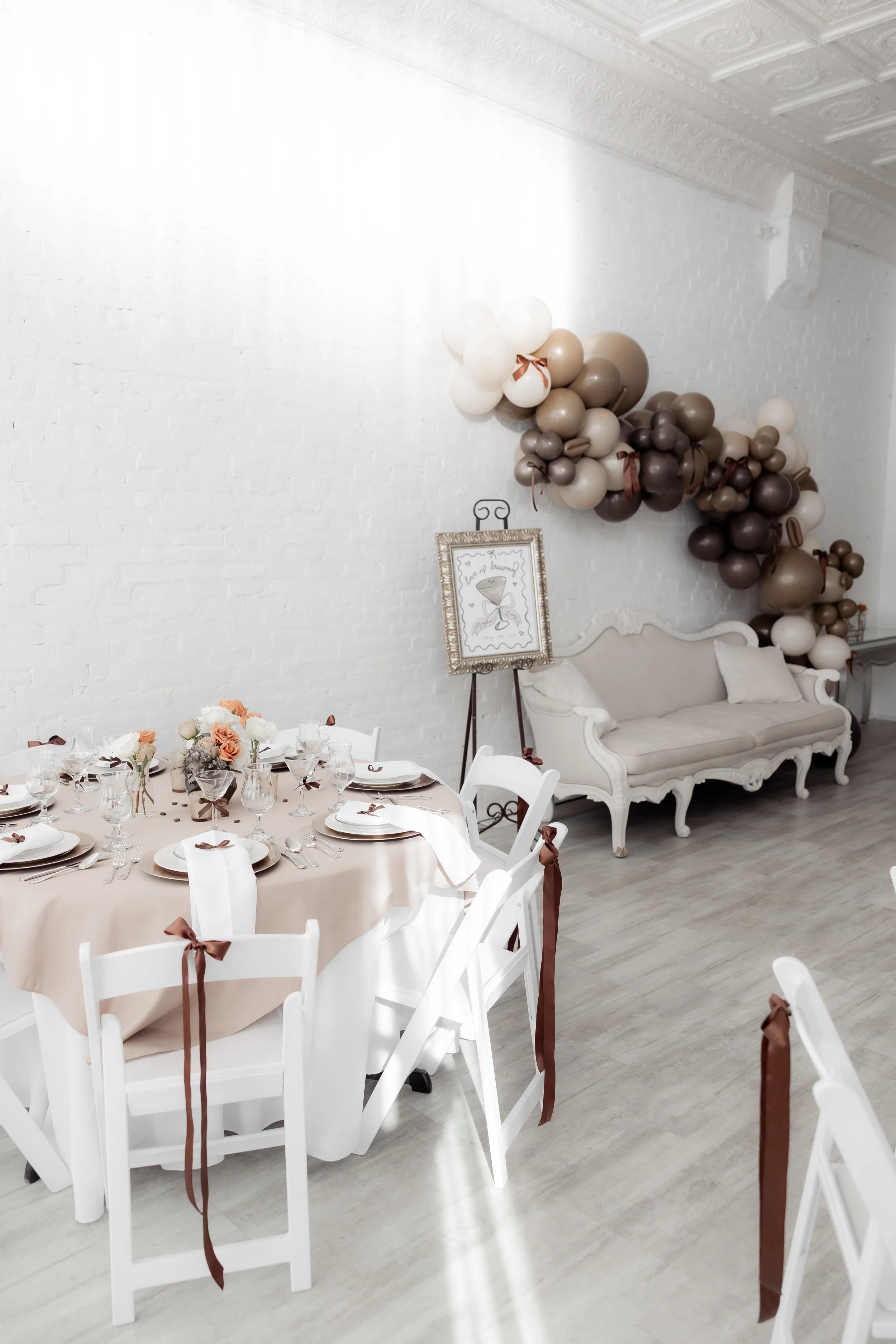 Every element you see from the fresh accents, balloons, rentals, and styling were all designed and installed in-house, fully set before the host arrived.