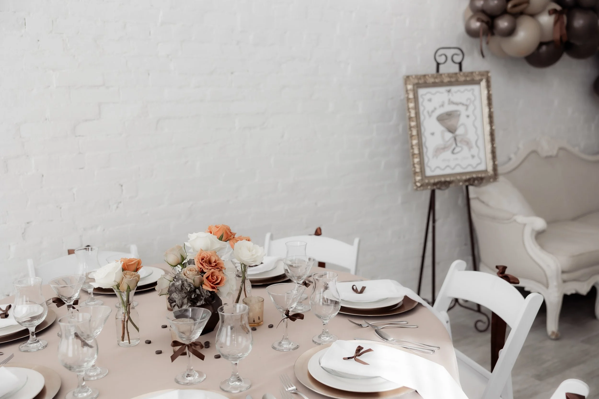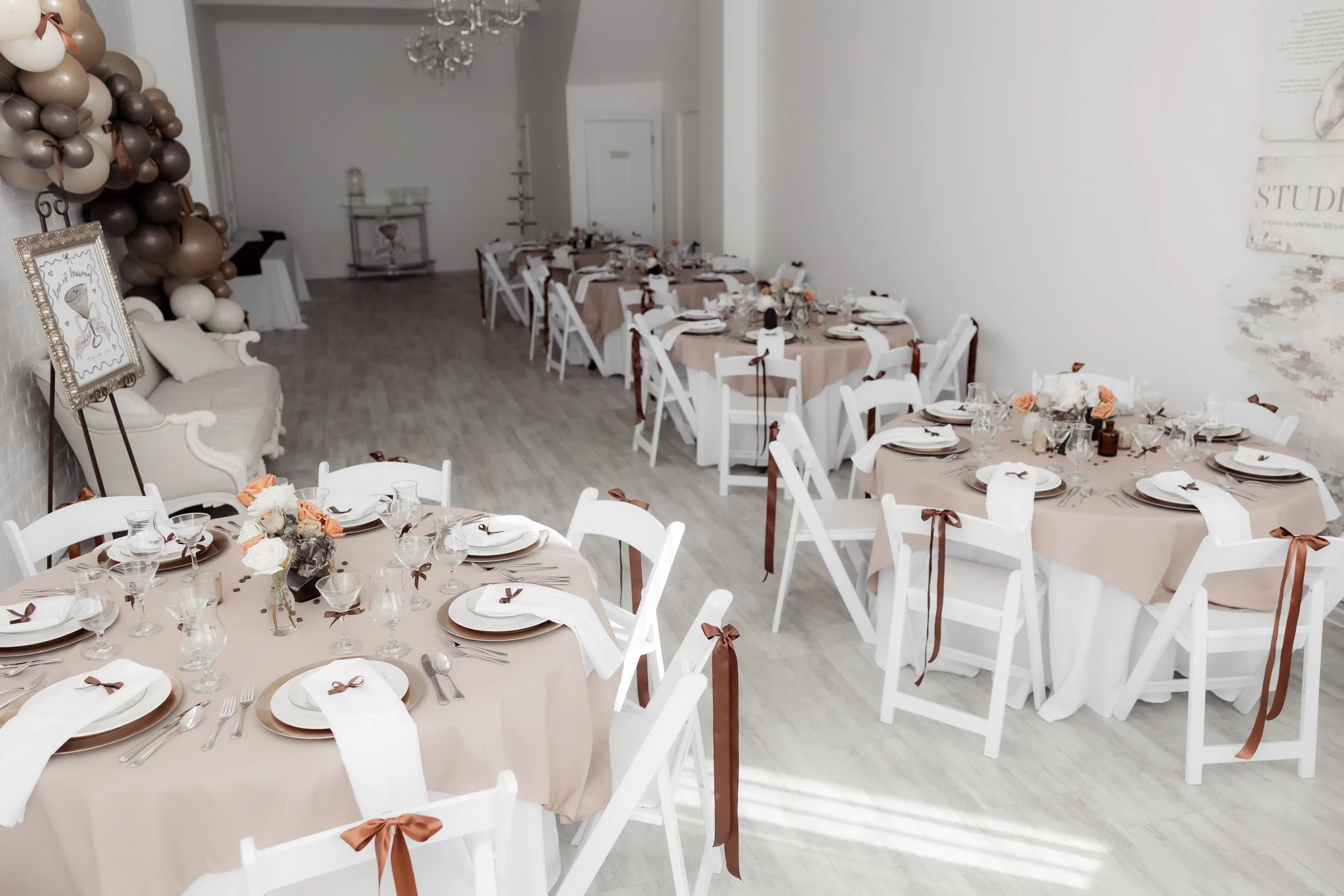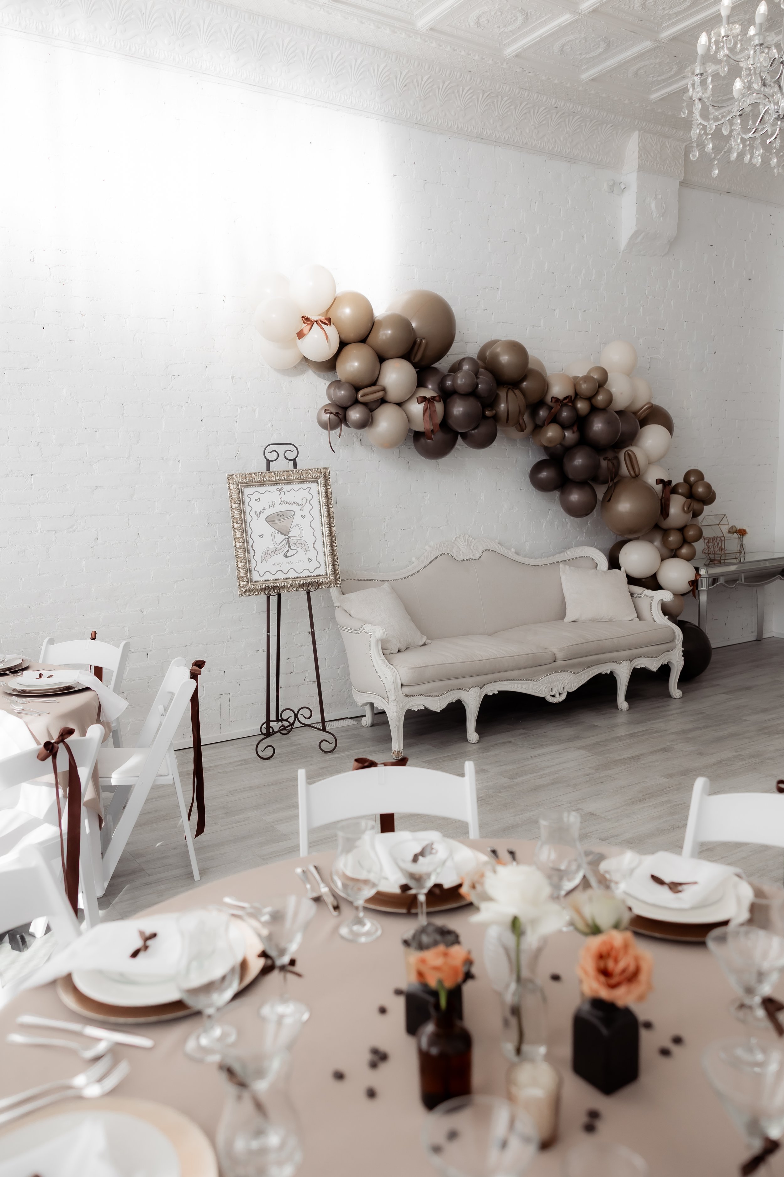 Every element you see from the fresh accents, balloons, rentals, and styling were all designed and installed in-house, fully set before the host arrived.