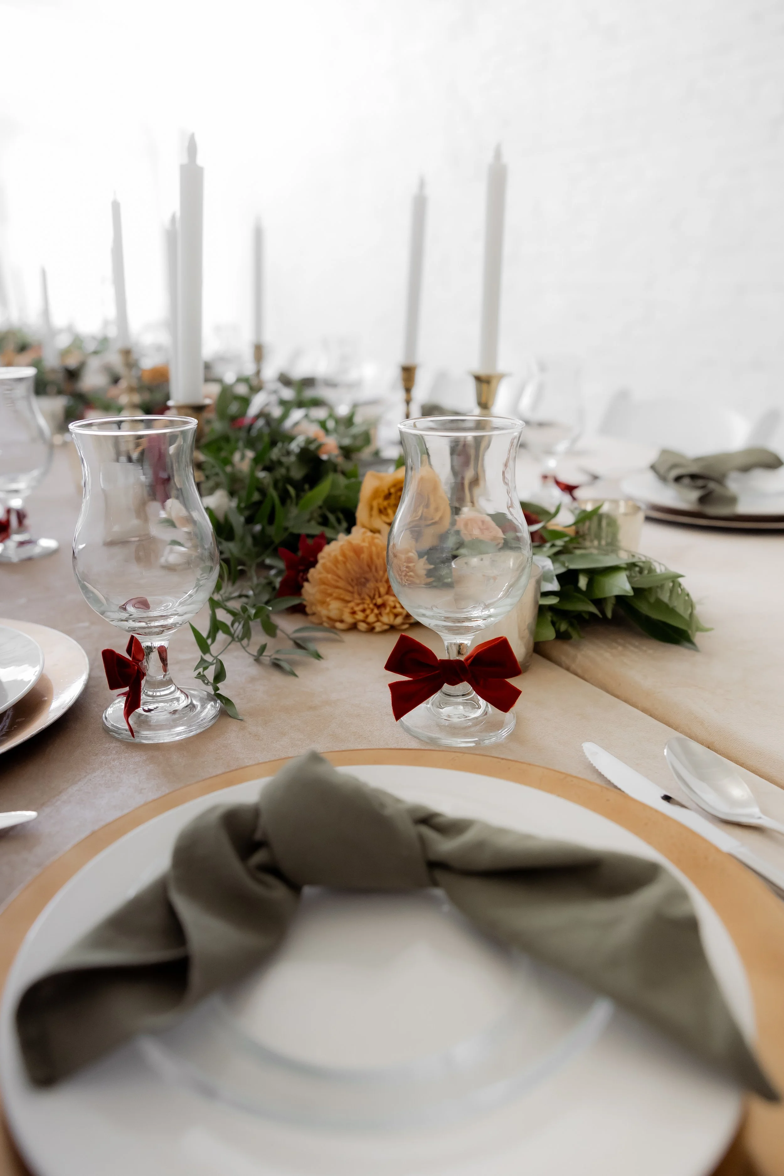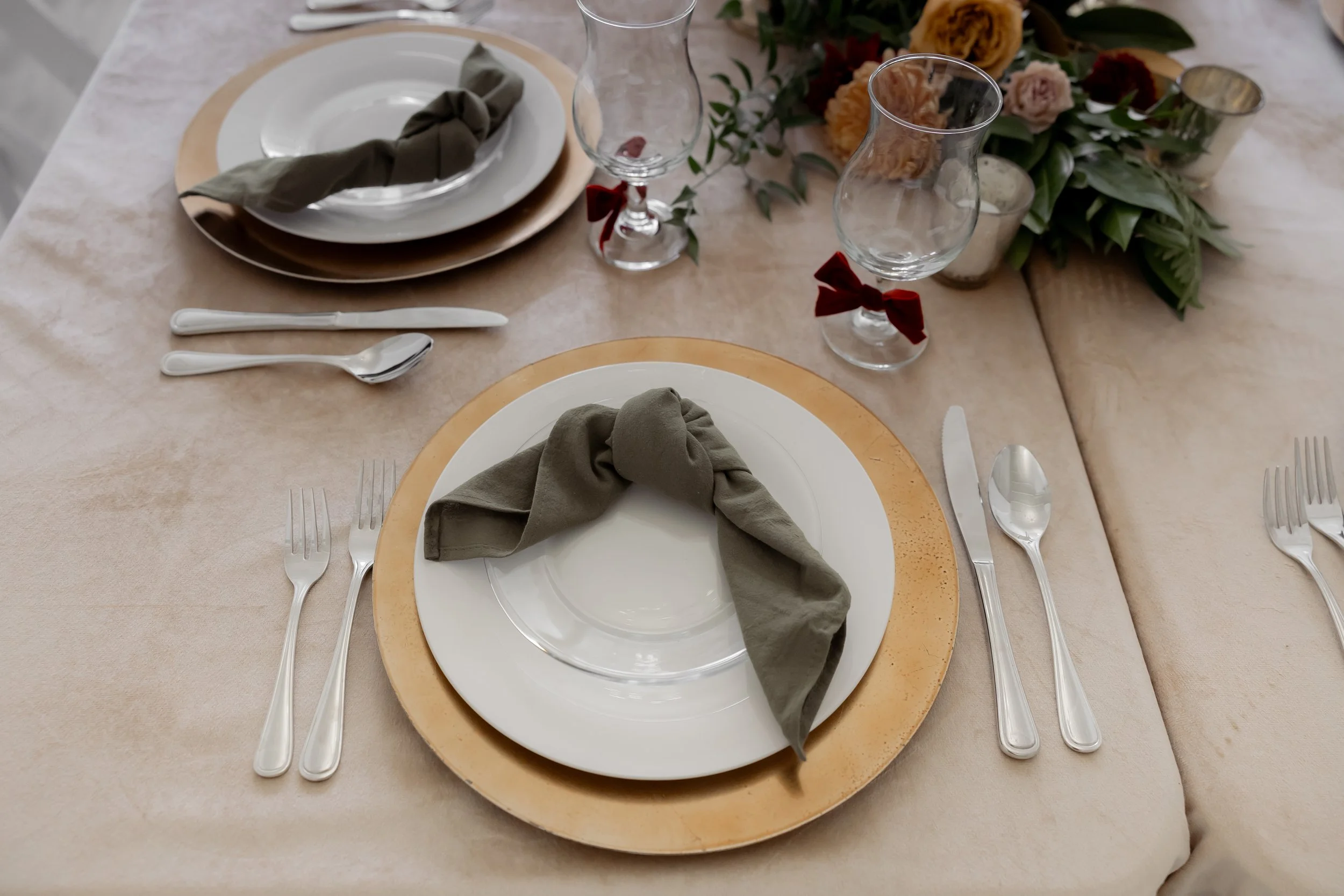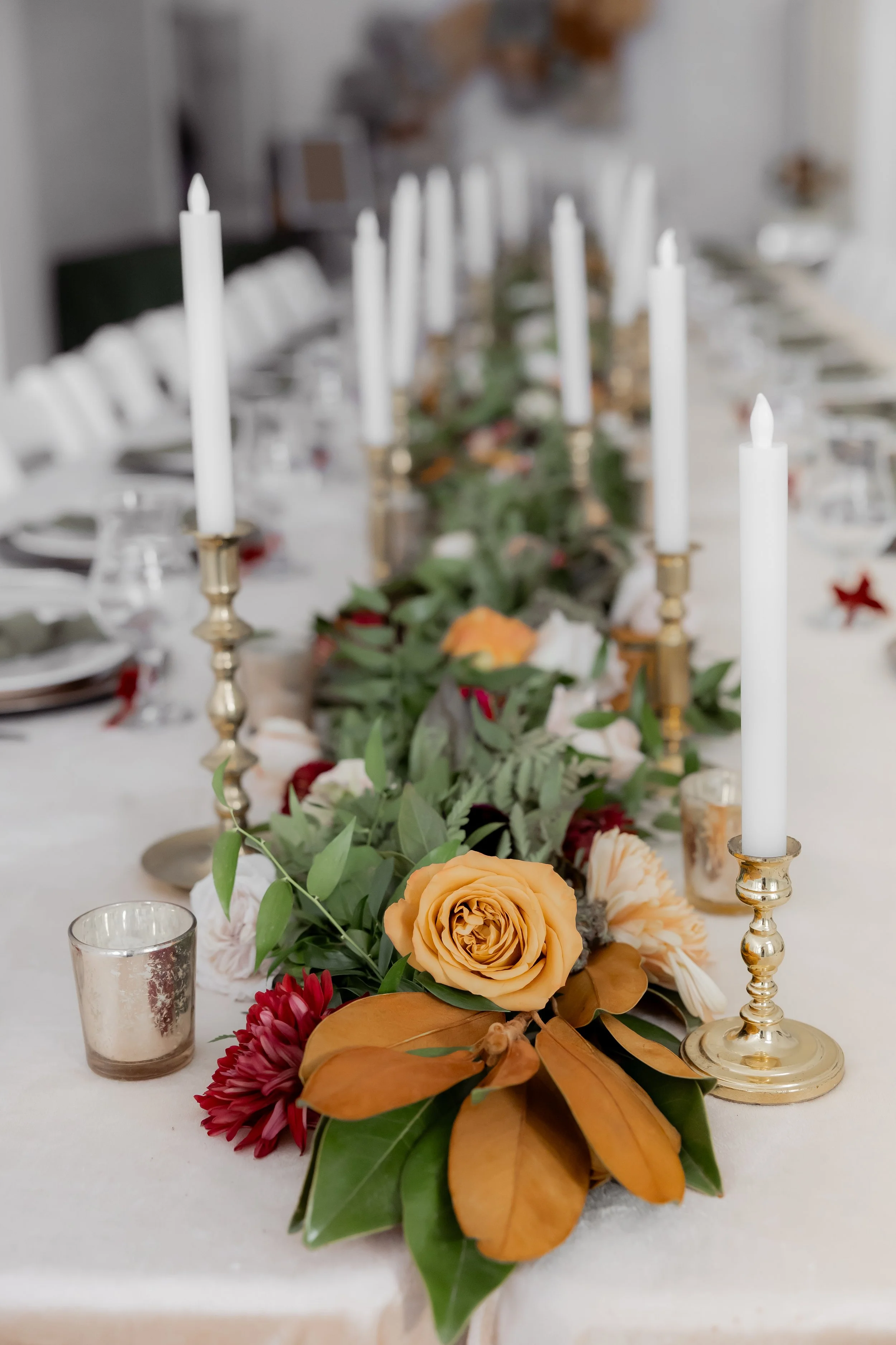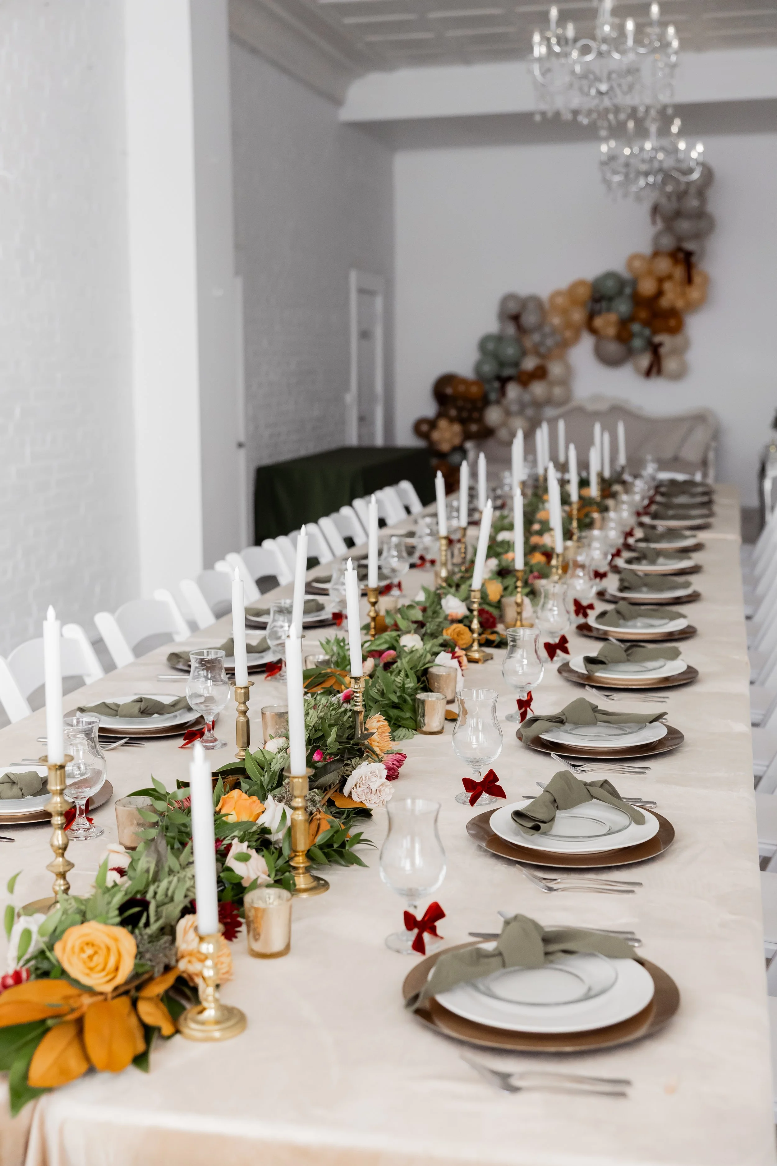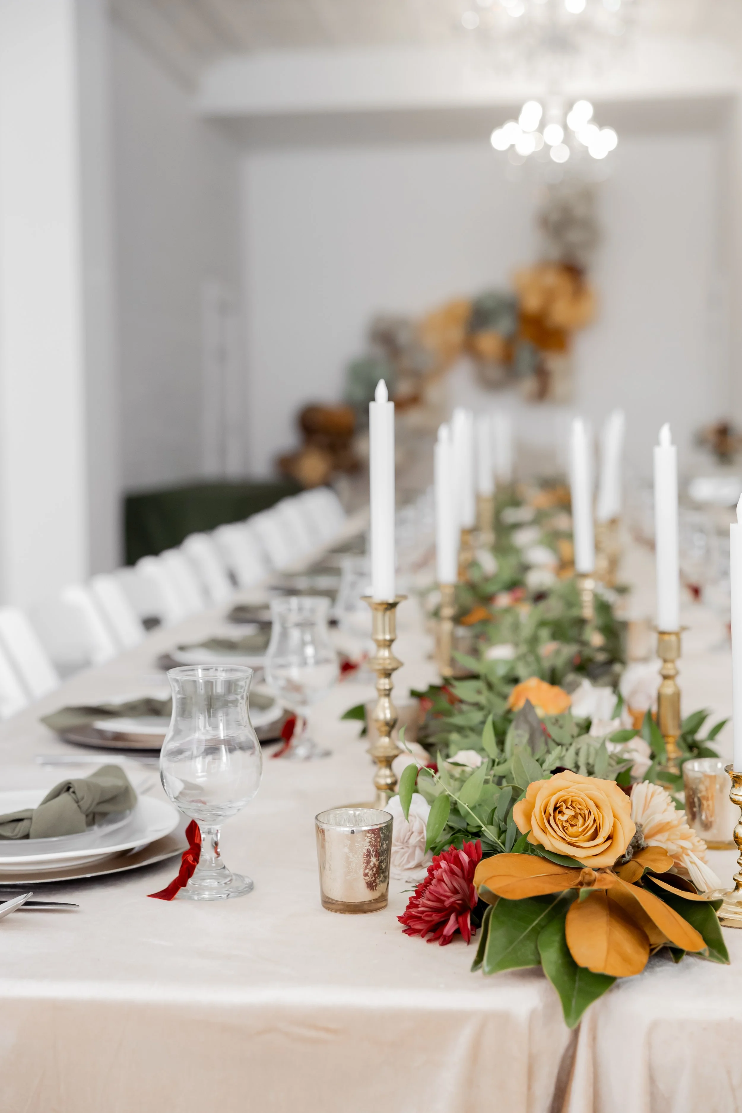 Under the direction of the mother of the groom, we created this fall, jewel-toned elegant dinner so she could simply arrive and enjoy. We layered deep seasonal colors throughout the table with fresh florals, textured linens, and thoughtful details that made the space feel full and inviting without being overdone. Everything came together to create a setting that felt warm, elevated, and perfect for gathering and celebrating before the big day ✨