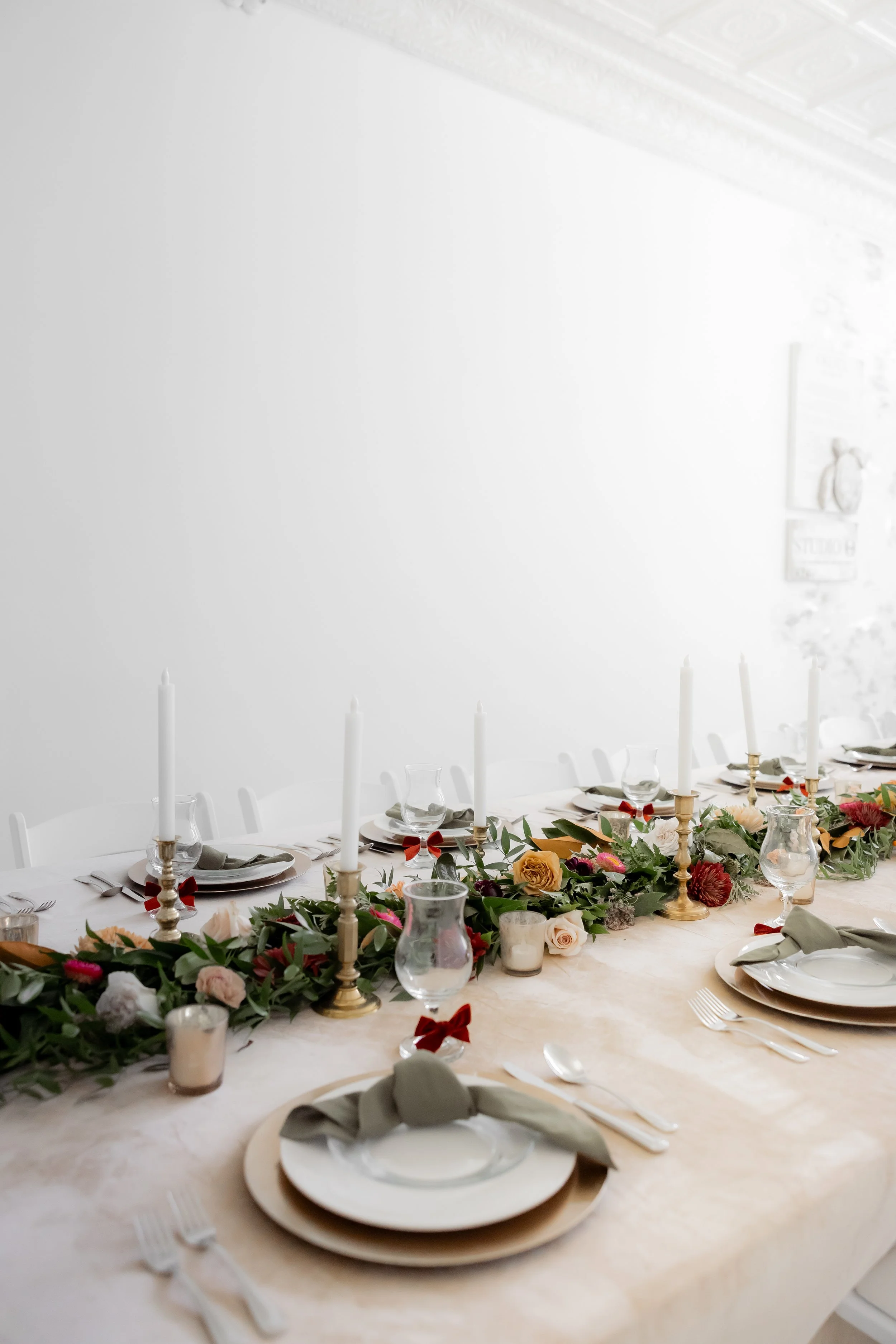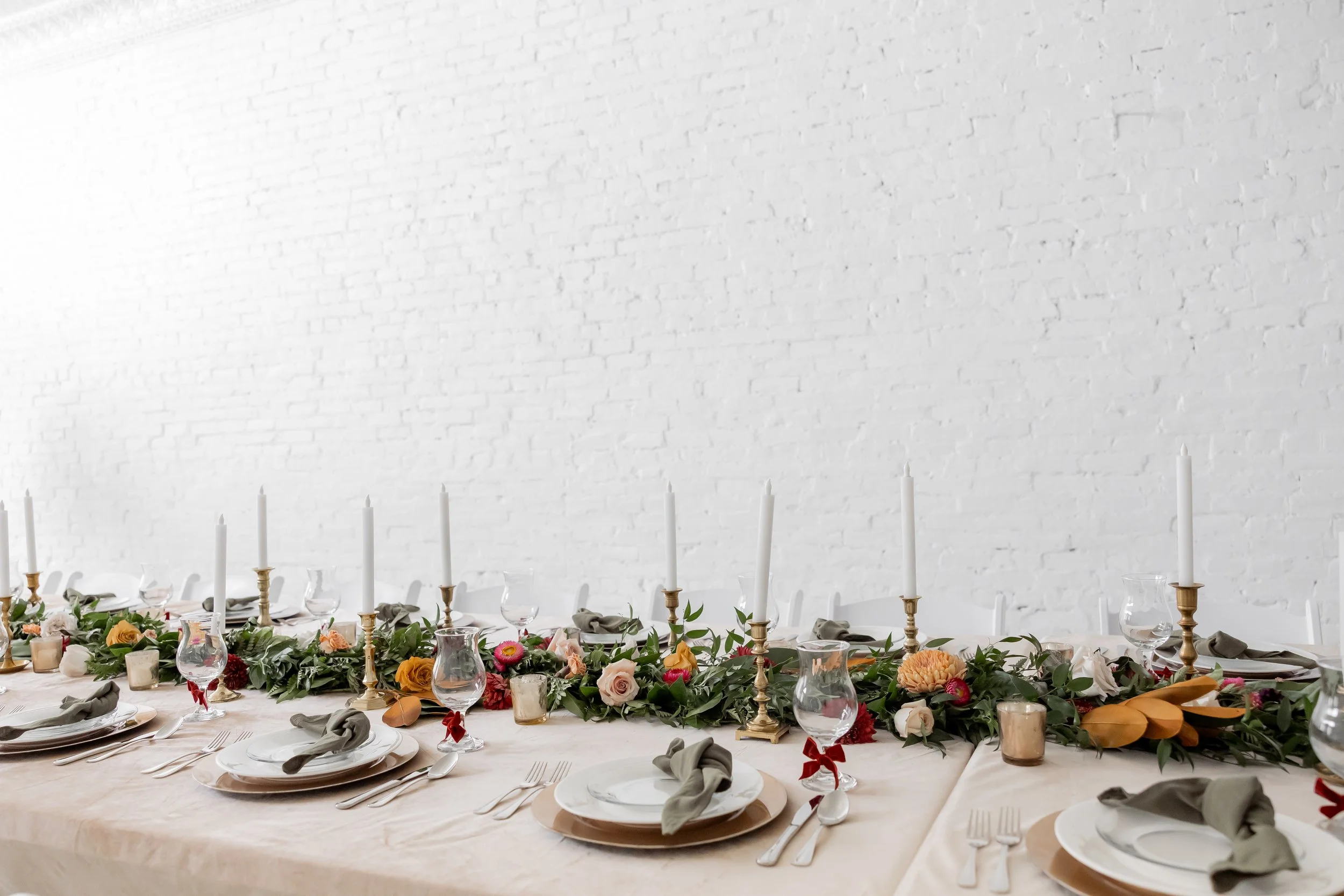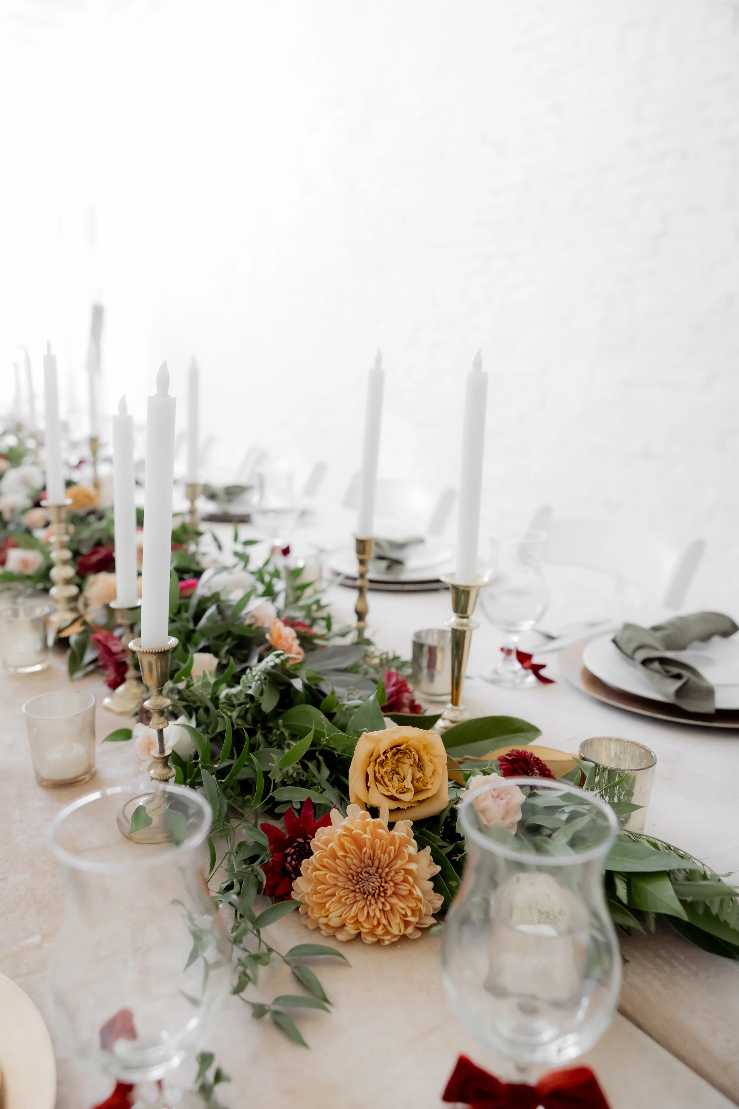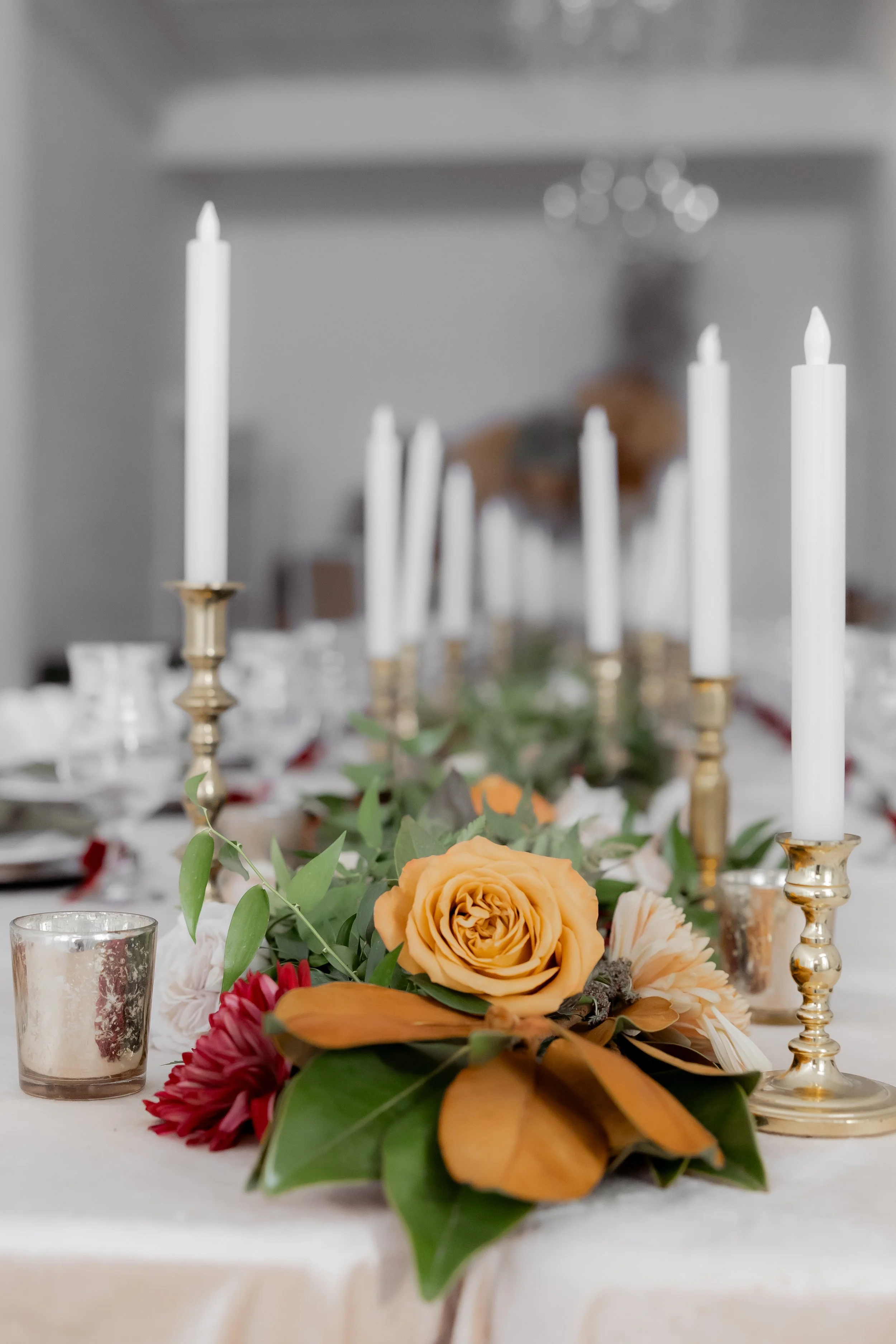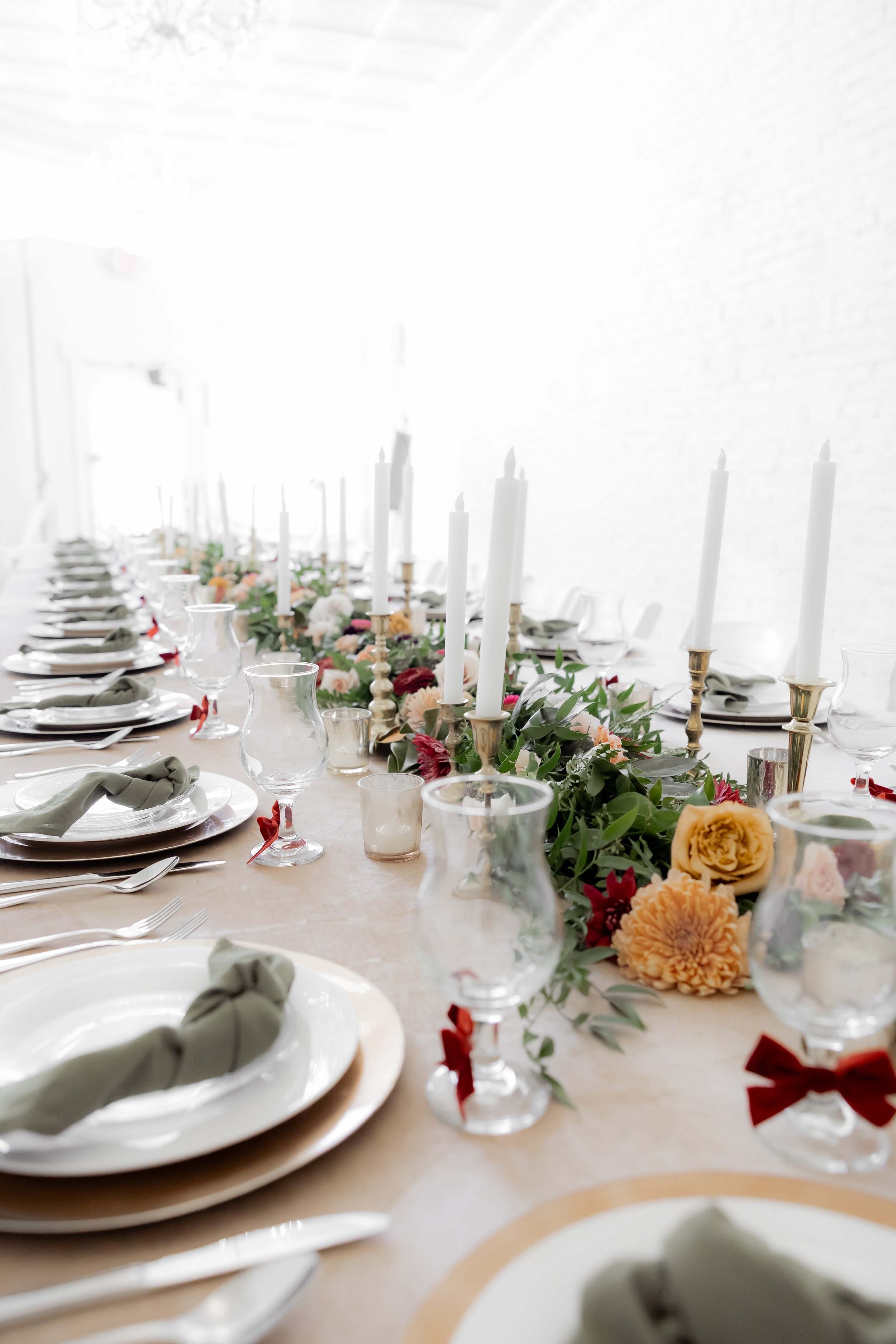 Under the direction of the mother of the groom, we created this fall, jewel-toned elegant dinner so she could simply arrive and enjoy. We layered deep seasonal colors throughout the table with fresh florals, textured linens, and thoughtful details that made the space feel full and inviting without being overdone. Everything came together to create a setting that felt warm, elevated, and perfect for gathering and celebrating before the big day ✨